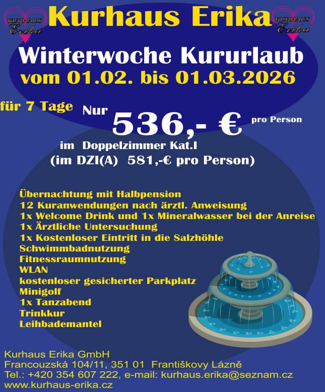 Sehr geehrte Damen und Herren, im Abteil „Sonderangebot“ sind jetzt neue Aktionspreise für Kuraufenthalte für das Jahr 2026.